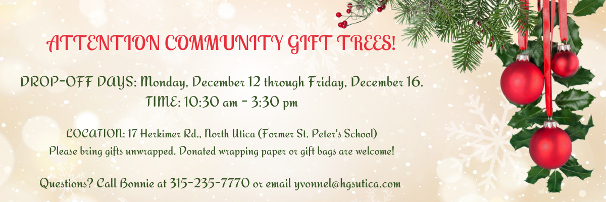 • Shopping online from one of our holiday wish lists and have your gifts(s) delivered right to us.