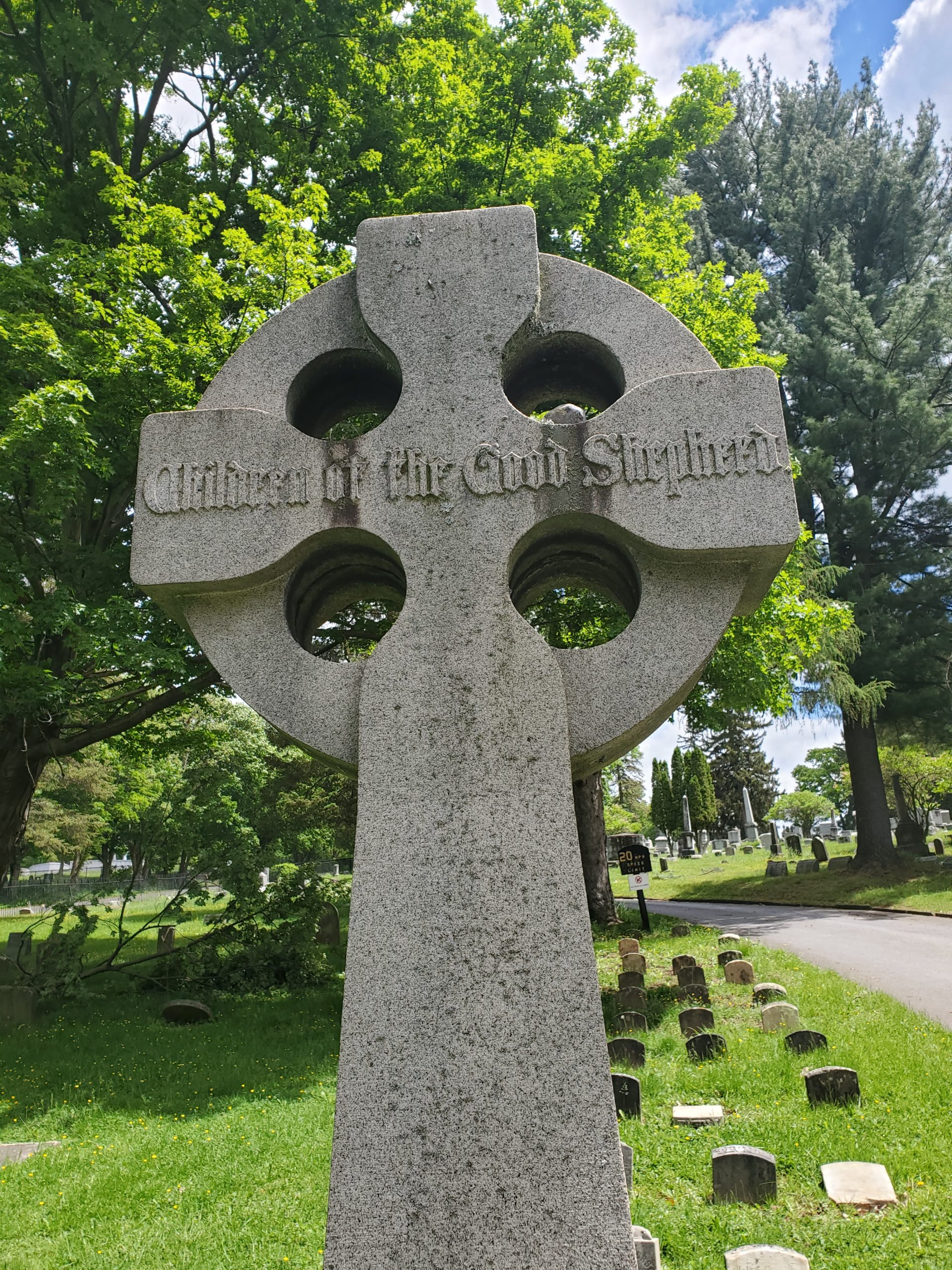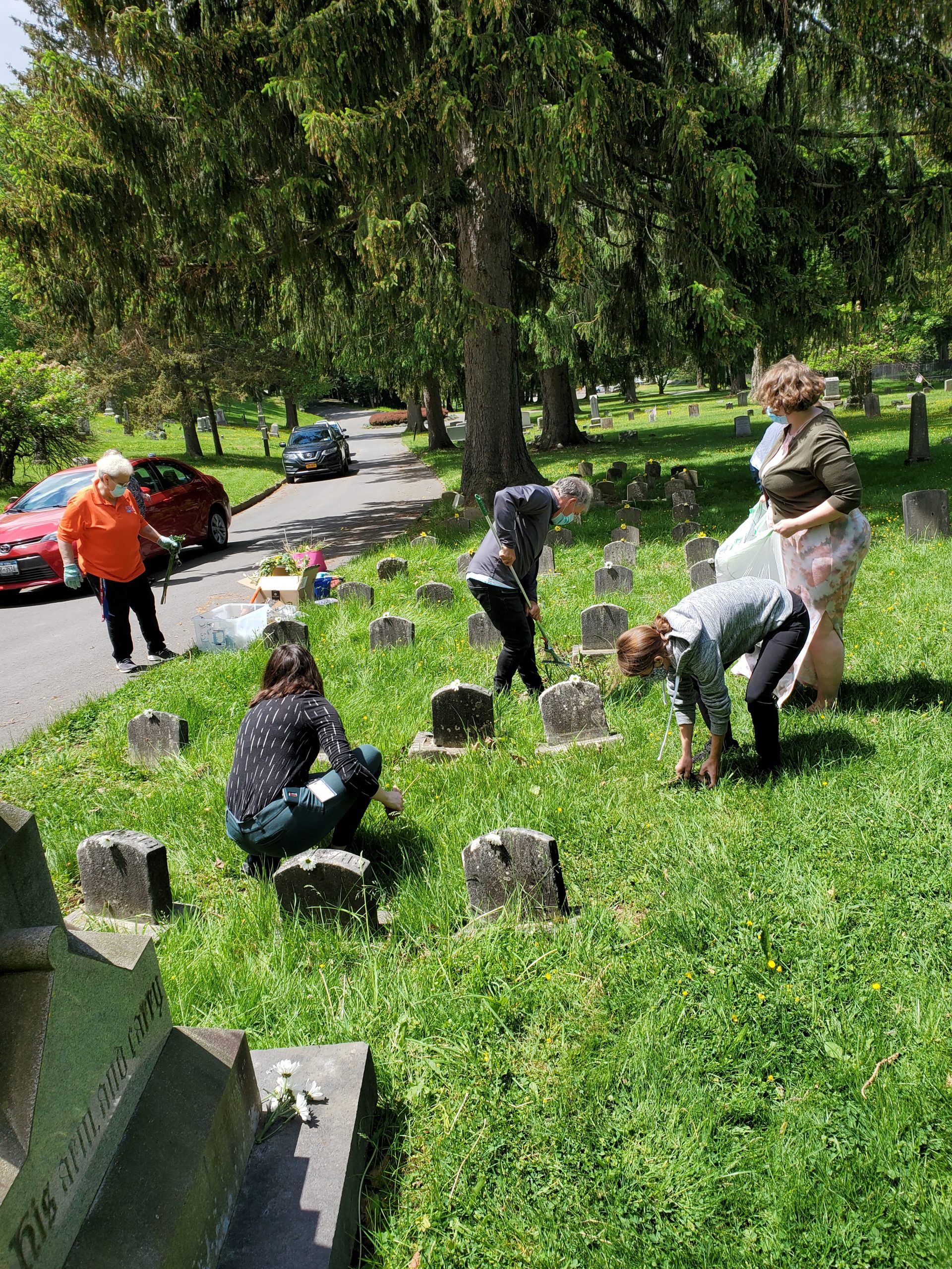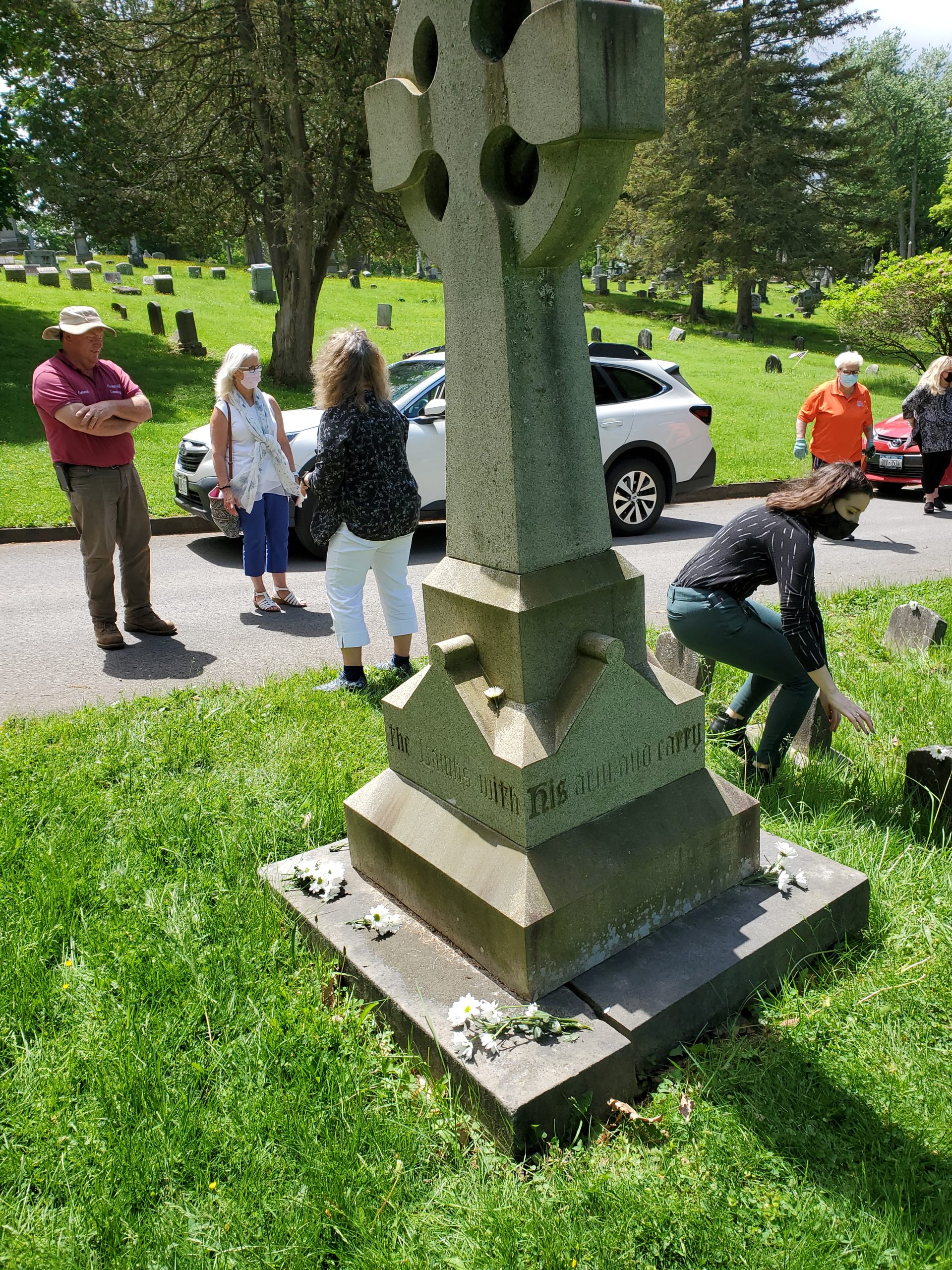 Clinical Manager Melissa Pavlicek took a stroll through Utica's historic Forest Hill Cemetery on an early spring day. A large stone engraved "Children of the Good Shepherd" caught her attention. After some research, she discovered the relationship to The House of the Good Shepherd. The gravesite was funded by Thomas Redfield Proctor and his wife Maria Watson Williams Proctor in the late 19th century. They wished to provide a dignified final resting place for orphaned children who lived at The House of the Good Shepherd. Melissa noticed that the site required some TLC, so she jumped into action and recruited a team to help.