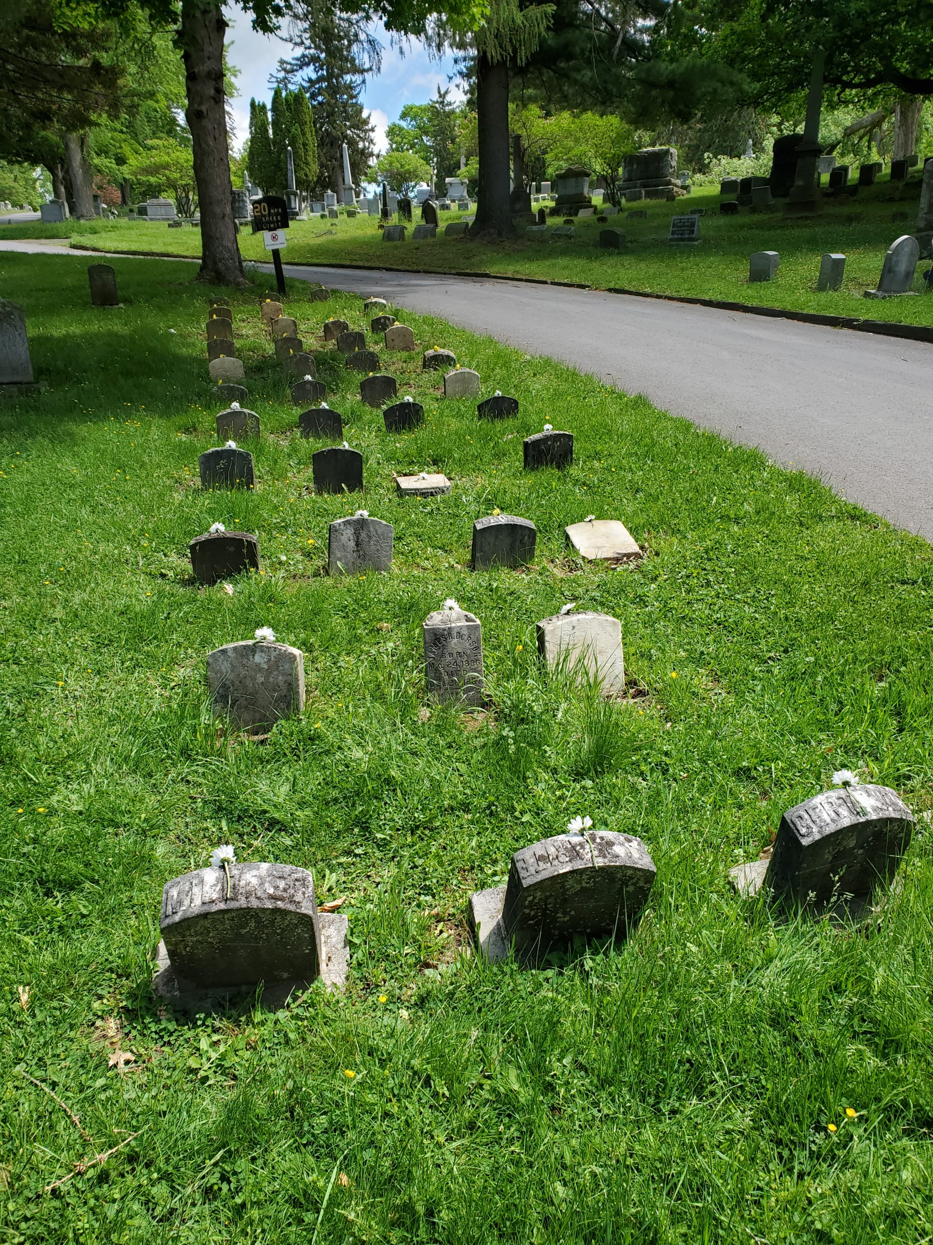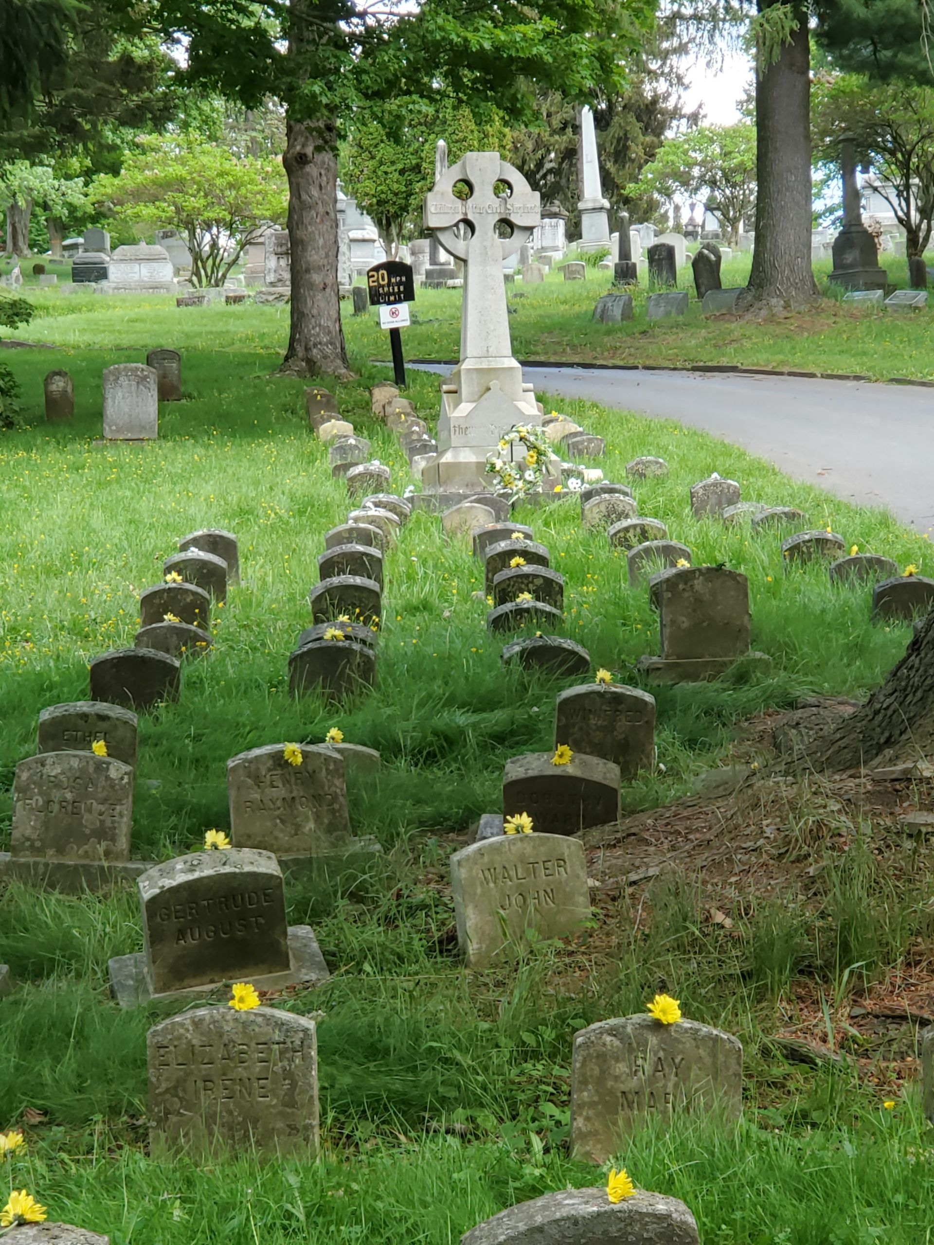 - Individual headstones of the young children who died from meningitis, pneumonia, consumption, measles, tuberculosis, and Spanish Flu.