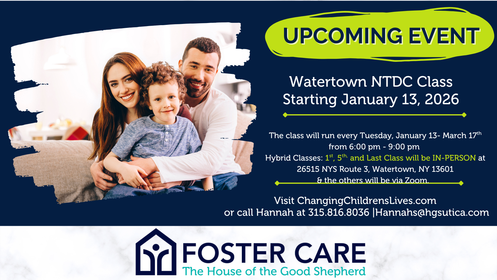 This free 10-week class is mandatory for all adults who will have a parenting role in a foster home. The NTDC program examines 12 criteria or skills necessary for successful foster parenting.